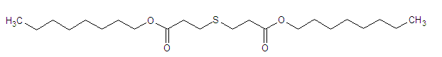 Synonyms : Dioctyl thiodiglycolate; Thiodiglycolic acid dioctyl ester CAS-No : 64660-74-8 Formula : S(CH2COOC8H17)2 Molecular Weight : 374.58g/mol Molecular structure : Density:0.974g/ cm3 Boiling point :201°C at 2.8Torr Solubility : Soluble in ethanol and ether, insoluble in water. Product Specifications: