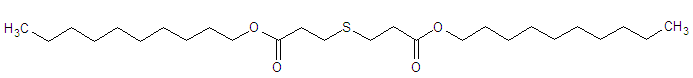 Synonyms : Didecyl 3,3'-thiodispropionate CAS-No : 4275-40-5 Formula : S(CH2CH2COOC10H21)2 Molecular Weight : 458.74g/mol Molecular structure : Density:0.958g/ cm3 Boiling point :534.9°C at 760 mmHg Solubility : Soluble in ethanol and ether, insoluble in water. Product Specifications: